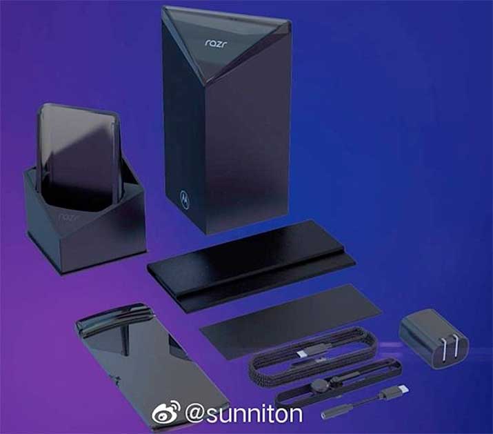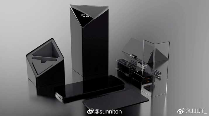 Weibo dió a conocer 4 fotografías que muestran al Motorola Razr, es probable que estas imágenes hayan sido tomadas de un video promocional, también podrás ver los accesorios que acompañarán el dispositivo.